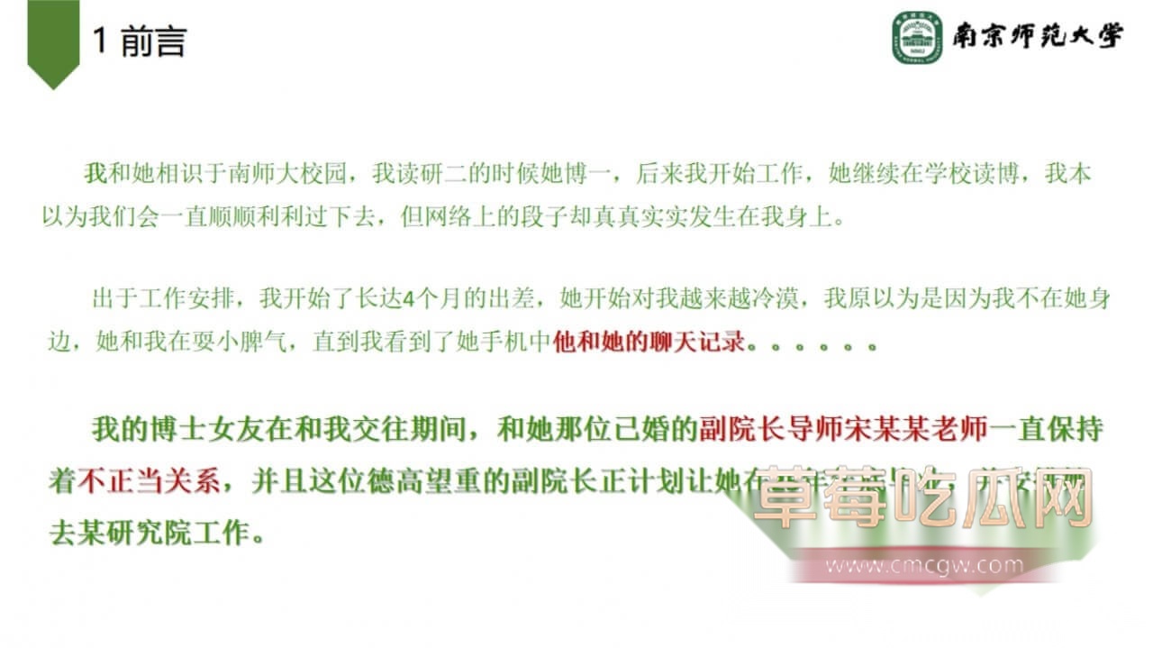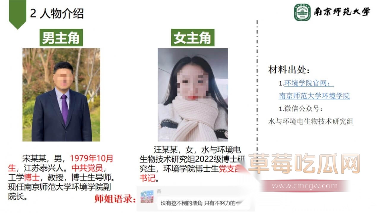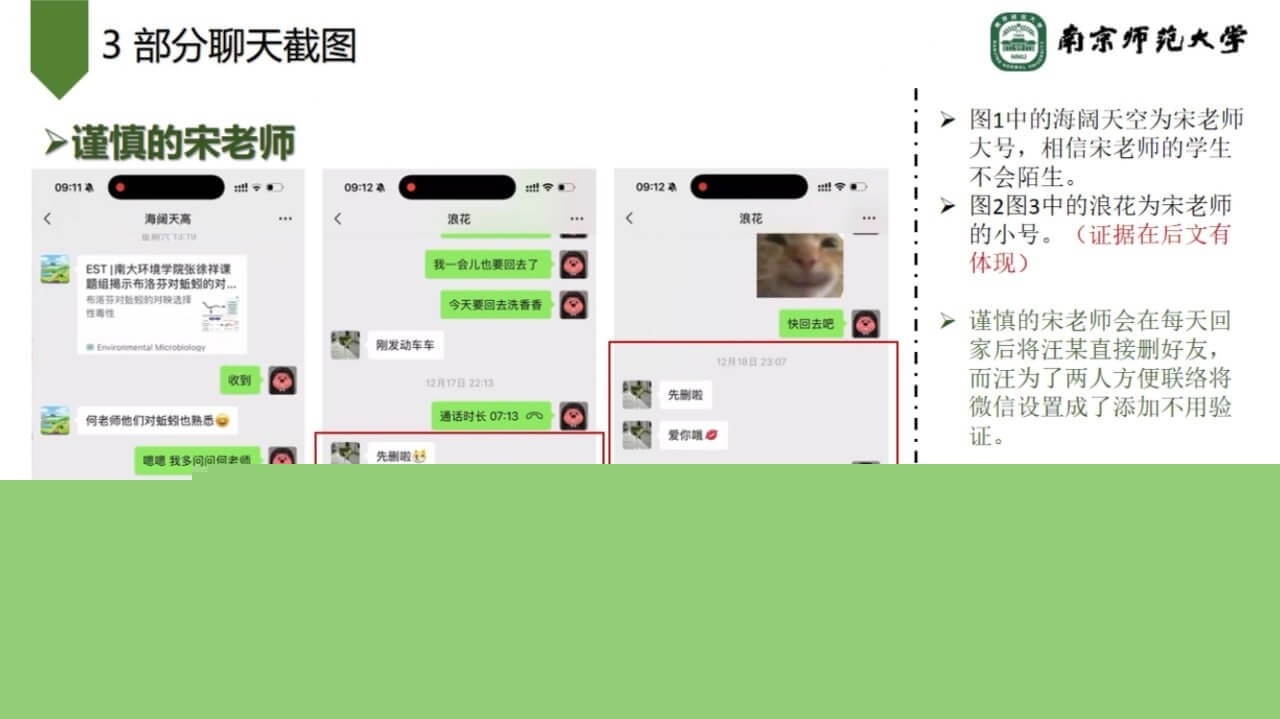 关键词:#南京师范大学环境学院副院长宋海亮 #婚内出轨 #女博士 #南京师大副院长出轨 #男友被绿 #PPT大瓜 #聊天记录 #南京师范大学 #副院长 #宋海亮 #汪慧香 #出轨 #南京师范大学宋海亮 #女博士汪慧香 #猪猪
