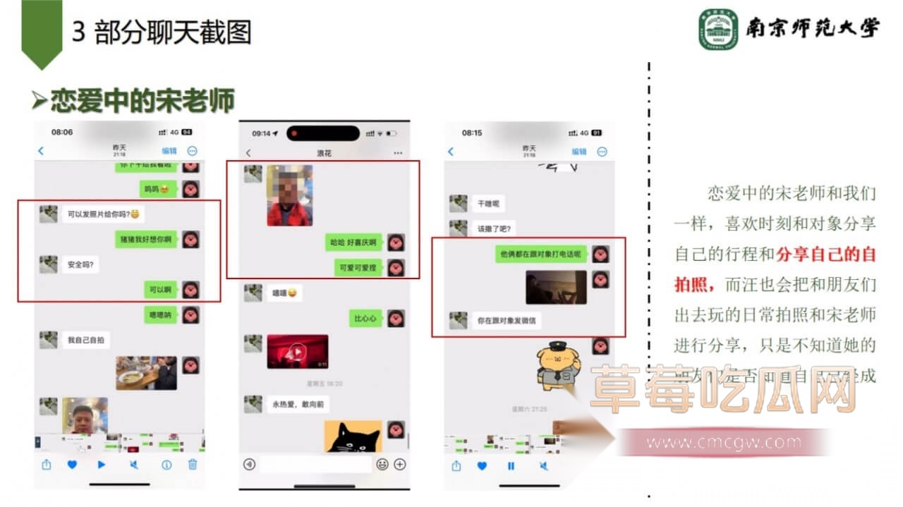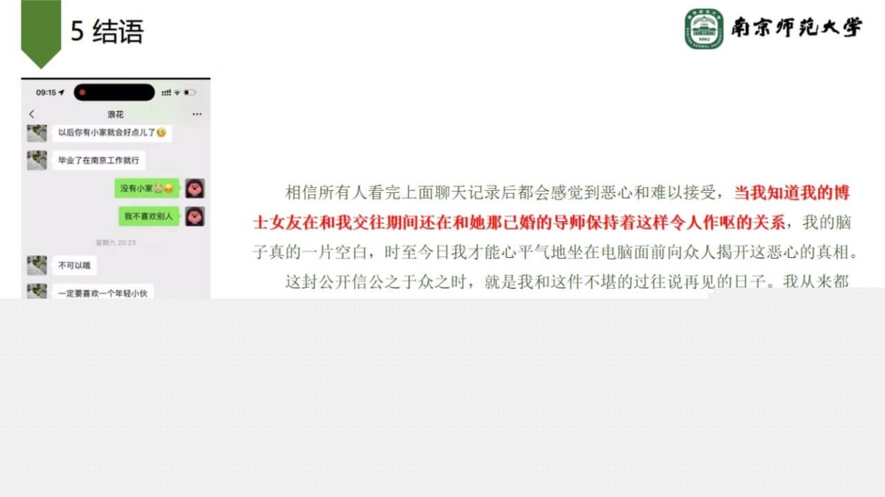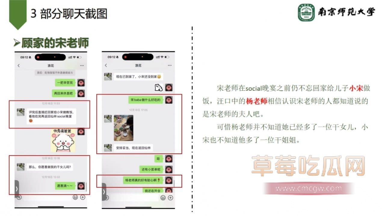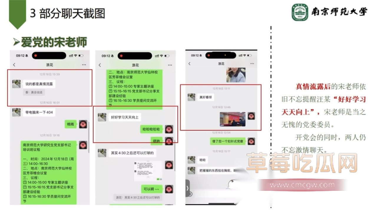 关键词:#南京师范大学环境学院副院长宋海亮 #婚内出轨 #女博士 #南京师大副院长出轨 #男友被绿 #PPT大瓜 #聊天记录 #南京师范大学 #副院长 #宋海亮 #汪慧香 #出轨 #南京师范大学宋海亮 #女博士汪慧香 #猪猪
