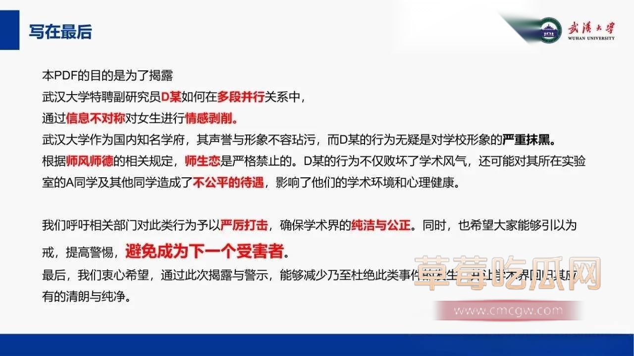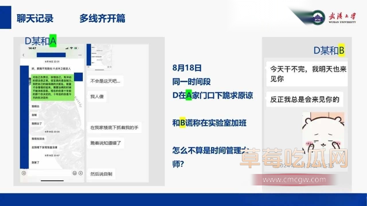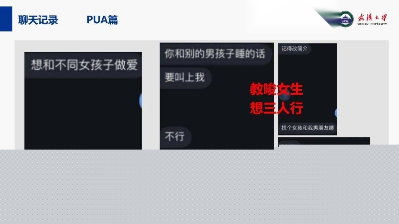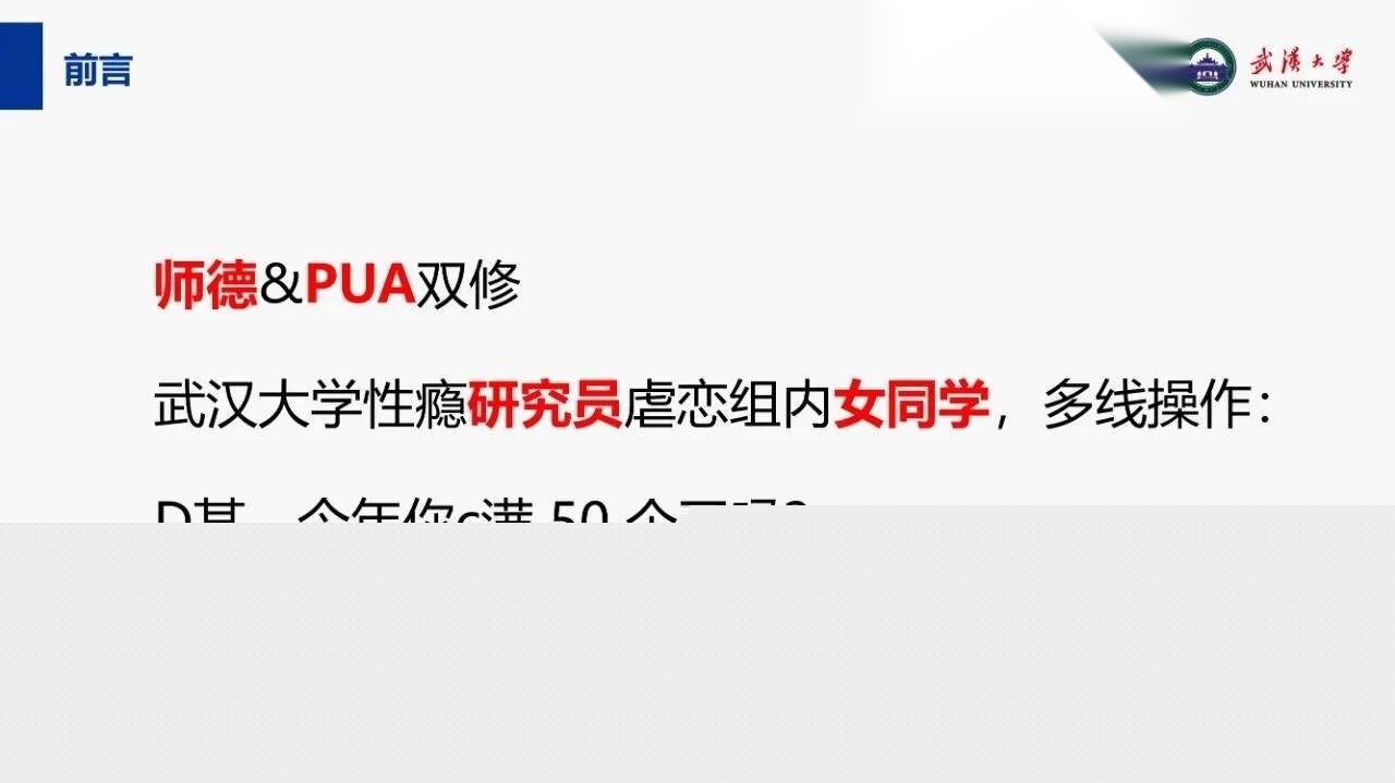 关键词:#武汉大学教授段磊师生恋 #出轨多人 #蛊惑女学生姜雨禾玩双飞 #恋爱期间多次出轨 #师生恋 #武汉大学 #武大 #曝光 #吃瓜 #PUA女学生 #段磊PPT #特聘教授段磊 #武汉大学吃瓜 #武汉大学师生恋 #段磊姜雨禾