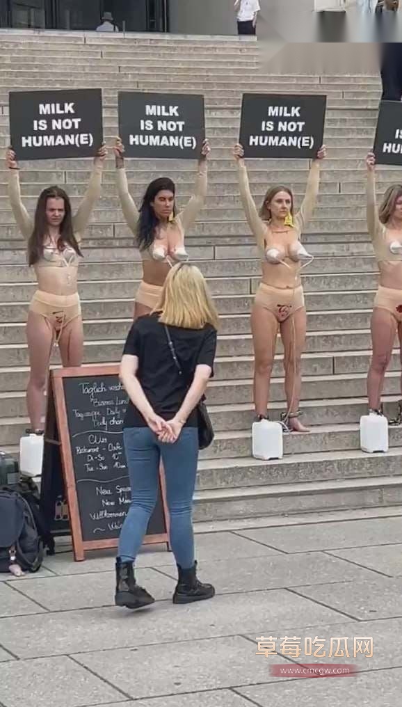 德国柏林,最近又出现“离谱抗议”现场!几个女子赤裸上身,胸部用着吸奶器,当街发声:“牛奶不是给人喝的!”呼吁大家拒绝牛奶消费,方式相当硬核,引发路人围观。更炸裂的是,女子们还来着大姨妈,下体流出鲜血,不少网友直呼“尺度拉满,画面冲击力十足”。料友们看后表示:这种活动,越整越离谱,但还真有人爱看!有人调侃:柏林永远不会让人失望!