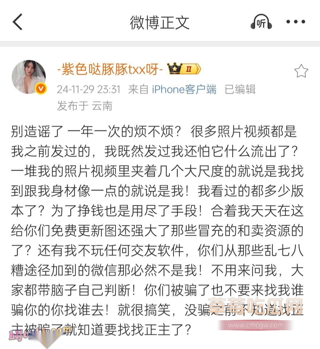 本文《微博大V童小芯被曝光了还死鸭子嘴硬 这次有她的半露脸视频 看她怎么狡辩》源于网络采集,仅代表作者观点,与本站立场无关