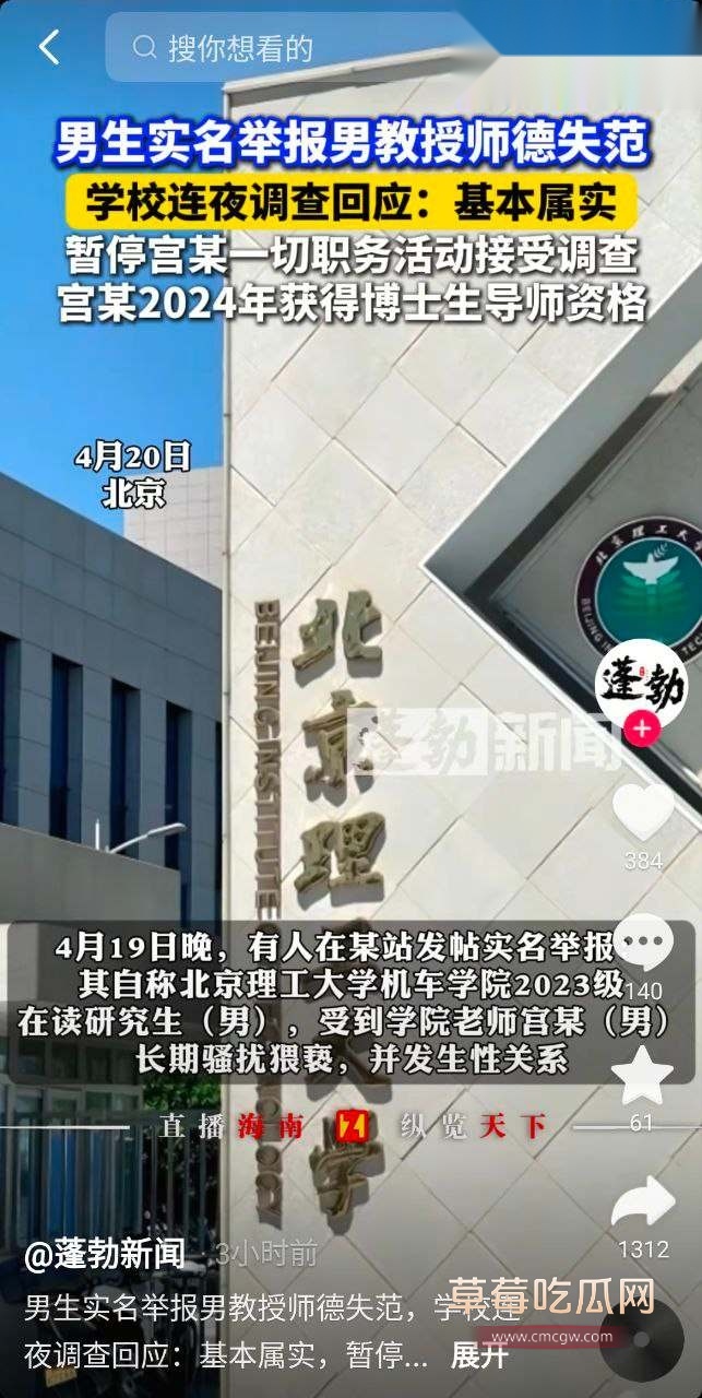本文《劲爆校园男同吃瓜!学生实名举报 北理工男教授宫琳性骚扰猥亵出轨和男学生发生性关系 人面兽心的东西!》源于网络采集,仅代表作者观点,与本站立场无关