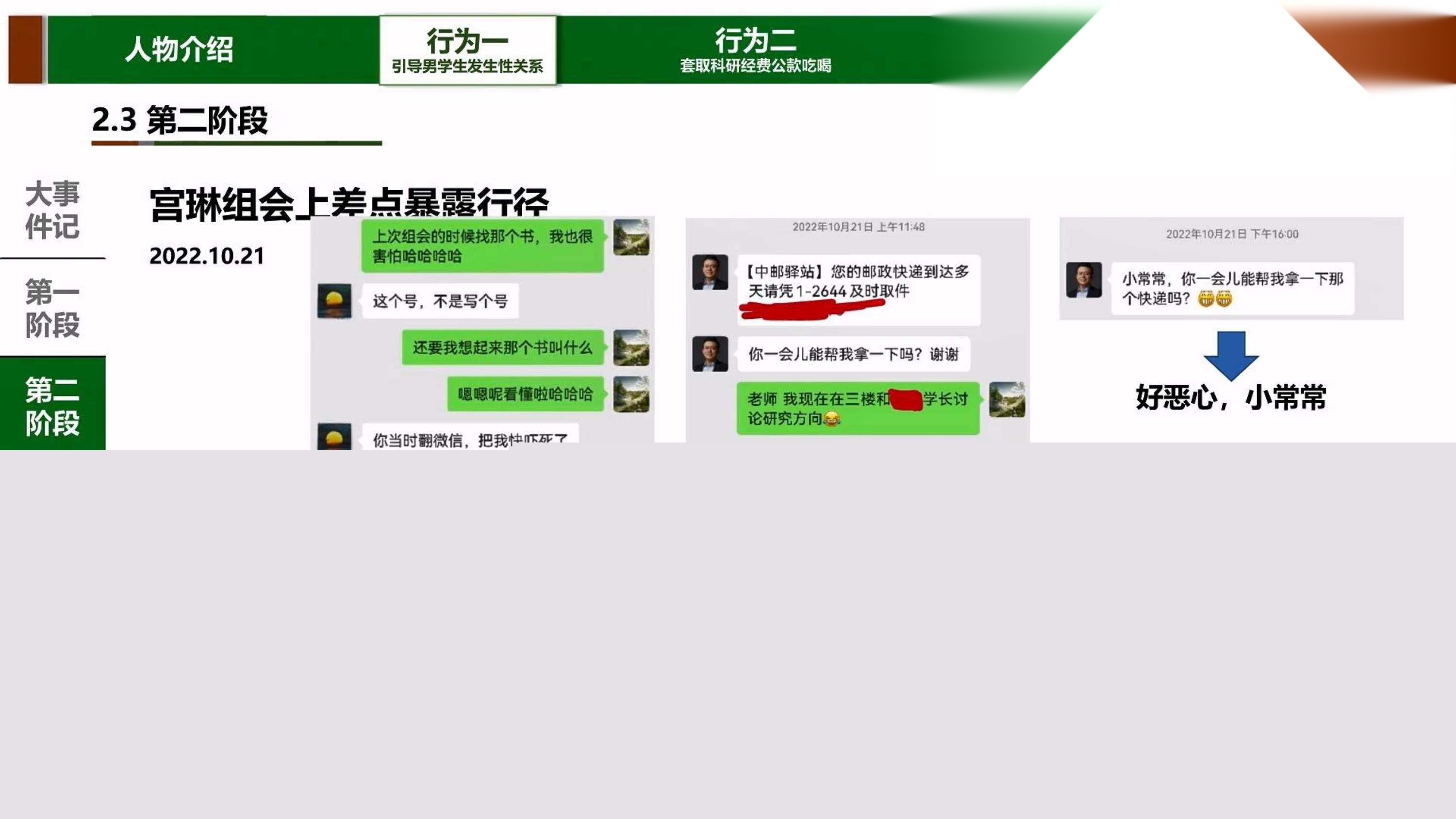 4月20日一大早,一条炸裂消息惊爆全网,网传消息披露,北京理工大学男教授宫琳疑似出轨自己的一名男学生 消息一经披露,立刻在网上炸了锅,很多网友听闻此消息后都直呼受不了,而随着媒体的曝光和当事人的发声,关于这起男男出轨事件背后的肮脏细节也被扒了个底朝天 举报人常某强此人2001年出生,现年24岁,吉林敦化市人,高考成绩645分 举报人还详细列出了他和宫某从相识到出轨的时间线。信息显示,两人于2021年11月互加好友,接着宫某开始约他吃饭,给他在网上买护肤品,早上发消息喊他起床。2022年11月5日,宫某发信息说想他 5月21日还给他买价值500元的护肤品和银质项链 目前北理工学院发出声明已经开出这个人渣!