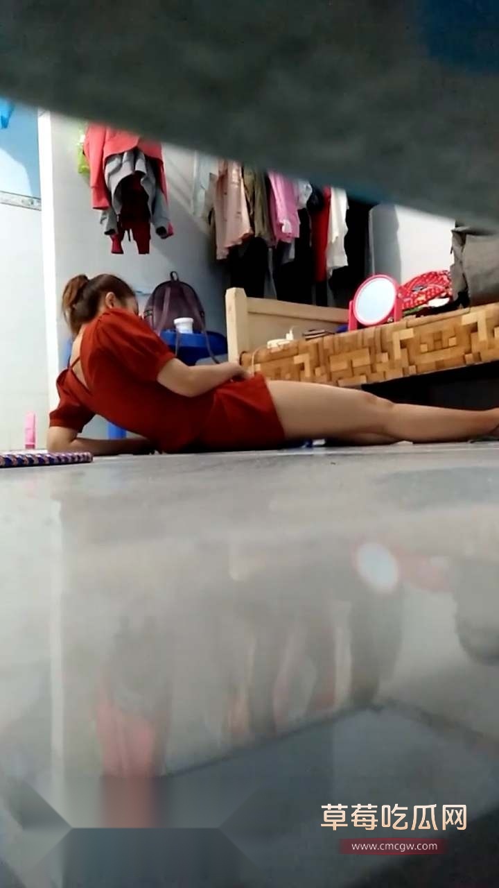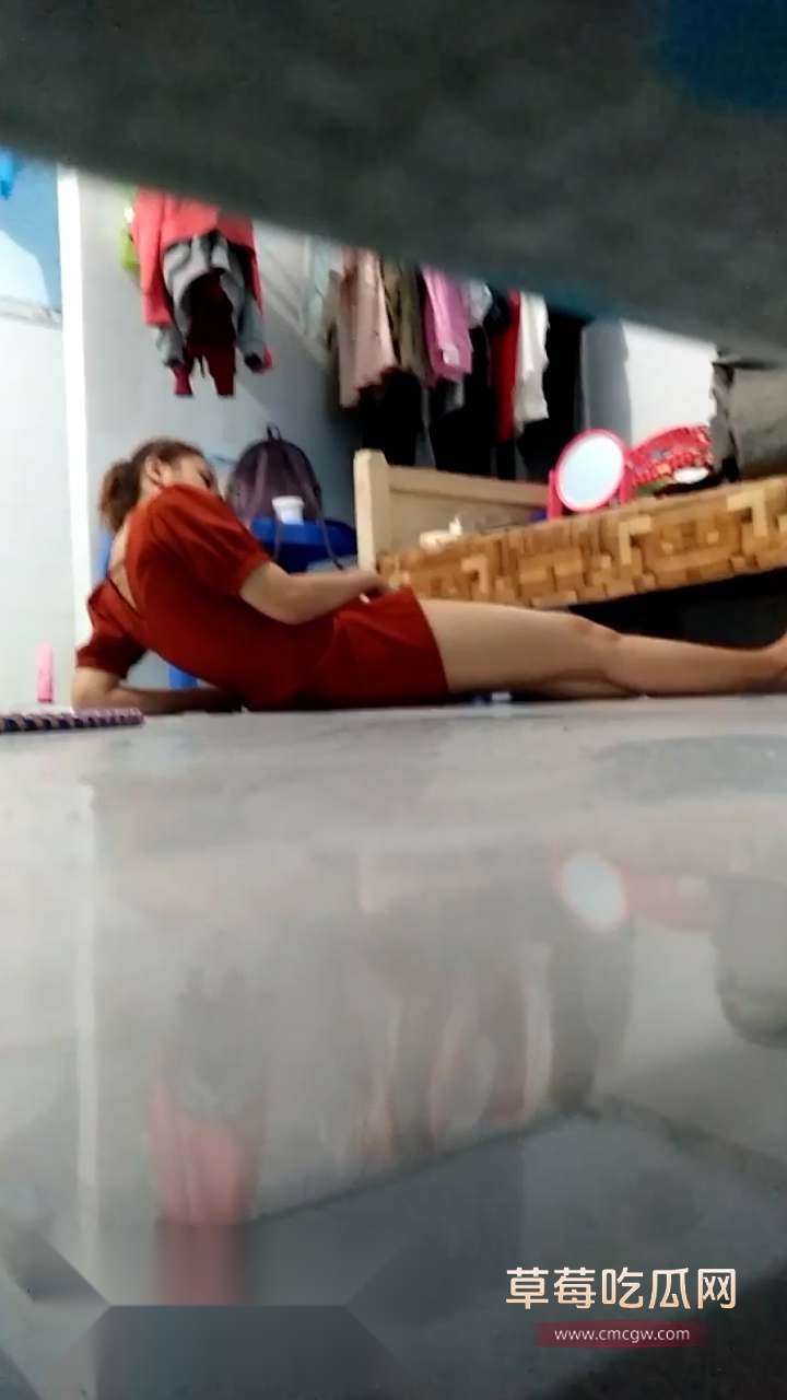 隔壁老六听见走廊里传出阵阵娇喘声,迫不及待的寻找到声源,拿出手机就往门缝里拍,只见一个美丽少妇躺在地下正在抠逼自慰,床上放着镜子,看着自己的手指在小骚穴里抽插,在慢慢的加快手速直接把自己送往高潮!